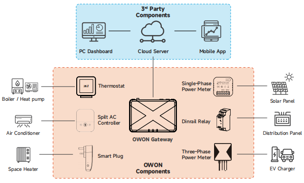 Riešenie OWON pre správu energie je postavené na škálovateľnej architektúre IoT: